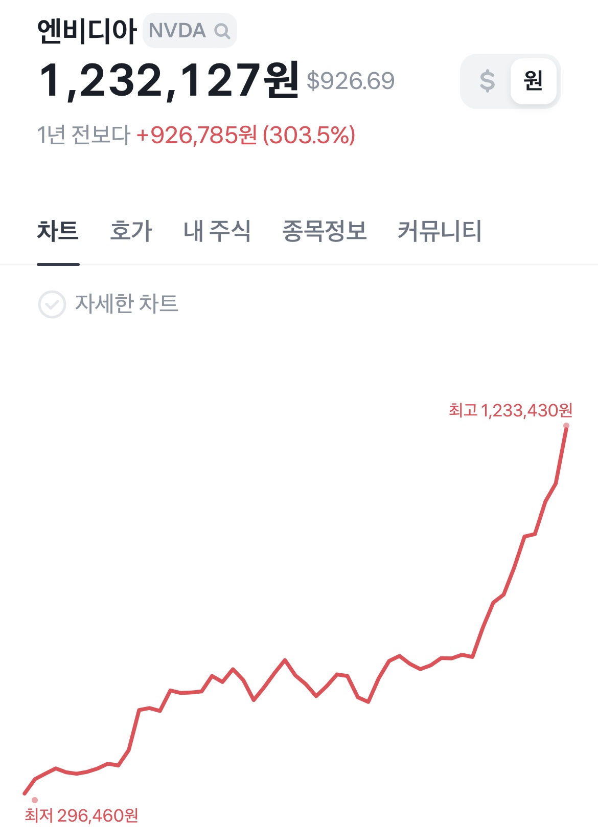 최근 미국 증시에서는 반도체 기업인 엔비디아(NVIDIA)주가가 크게 상승하면서 투자자들의 관심을 끌고 있다. 특히 최근 1년 동안 엔비디아 주가는 약 300% 급등했다. 엔비디아 주가가 상승한 배경으로는 AI 기술 발전이 주요한 원인으로 꼽힌다. 일부 애널리스트들은 엔비디아가 애플의 시총 1위 자리를 빼앗을거라는 전망도 내놓고 있다.