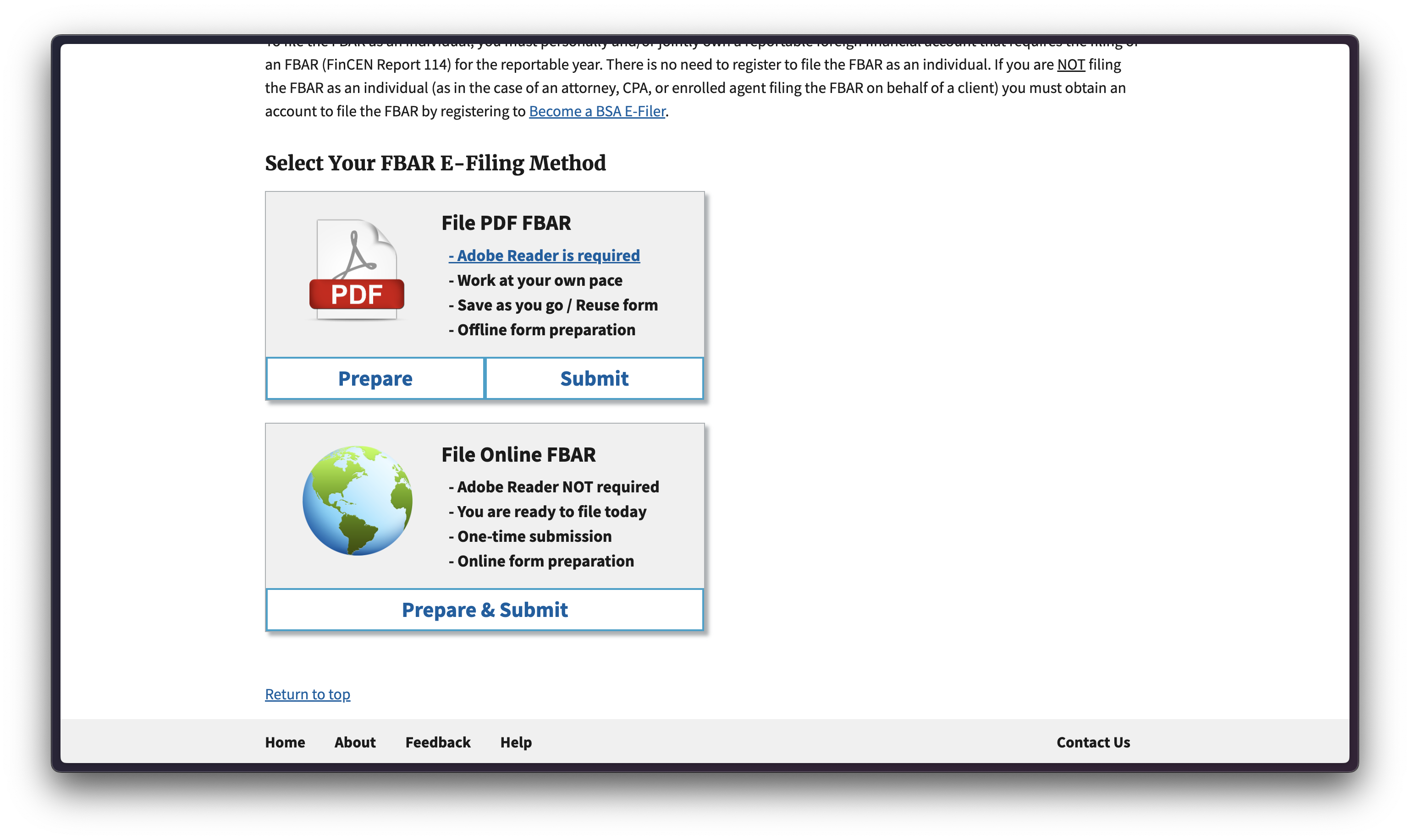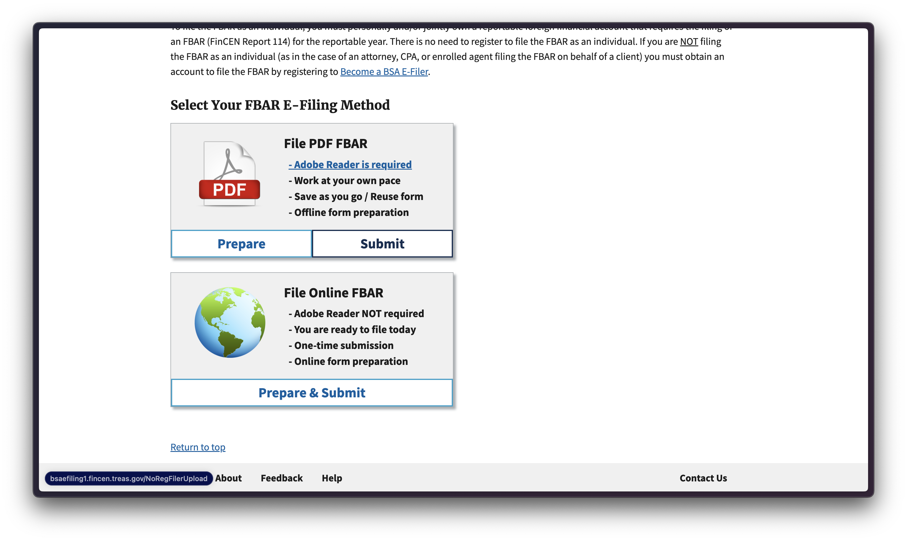 4. FBAR E-filing 방법 선택