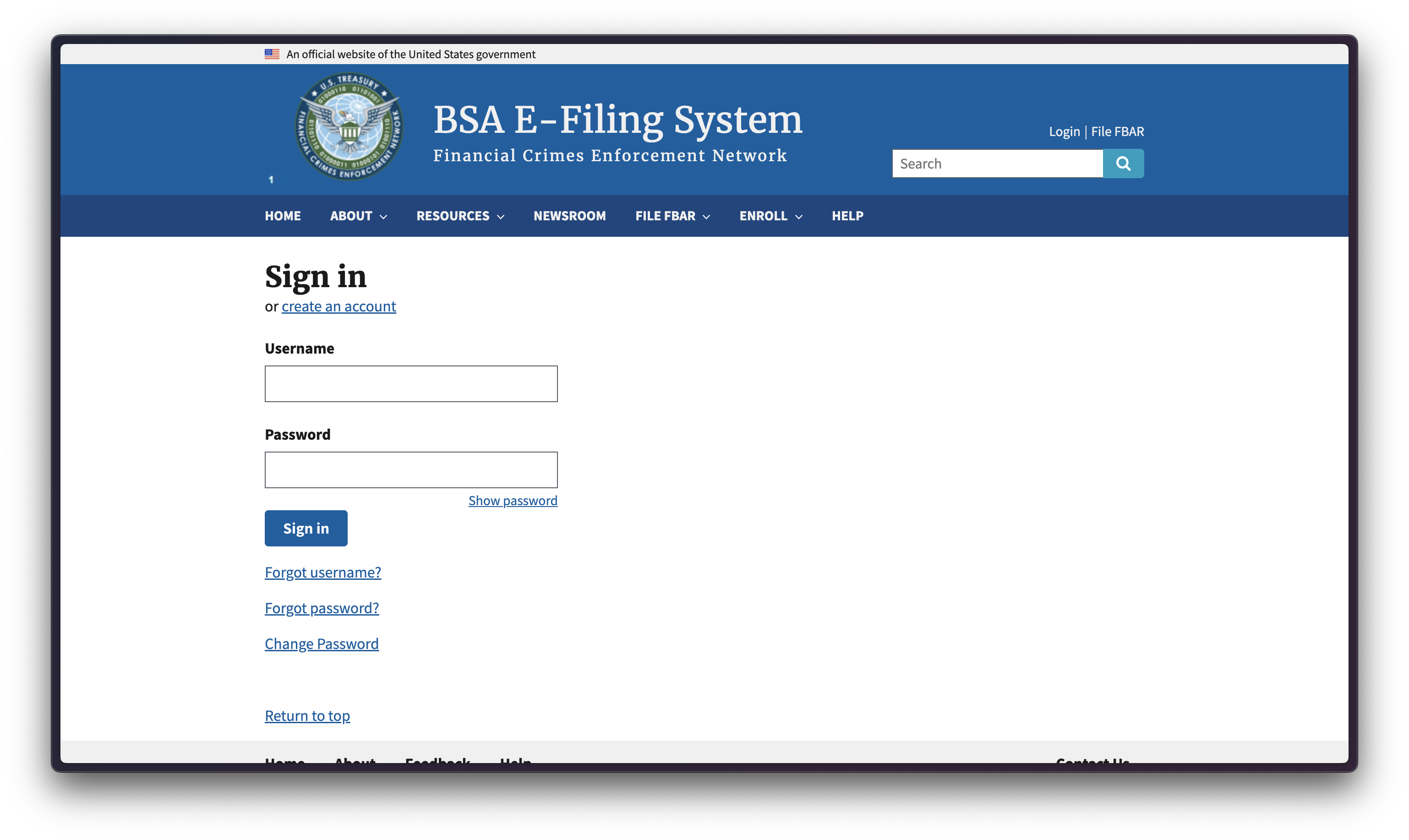 1. FBAR 온라인 신고 시스템 접속