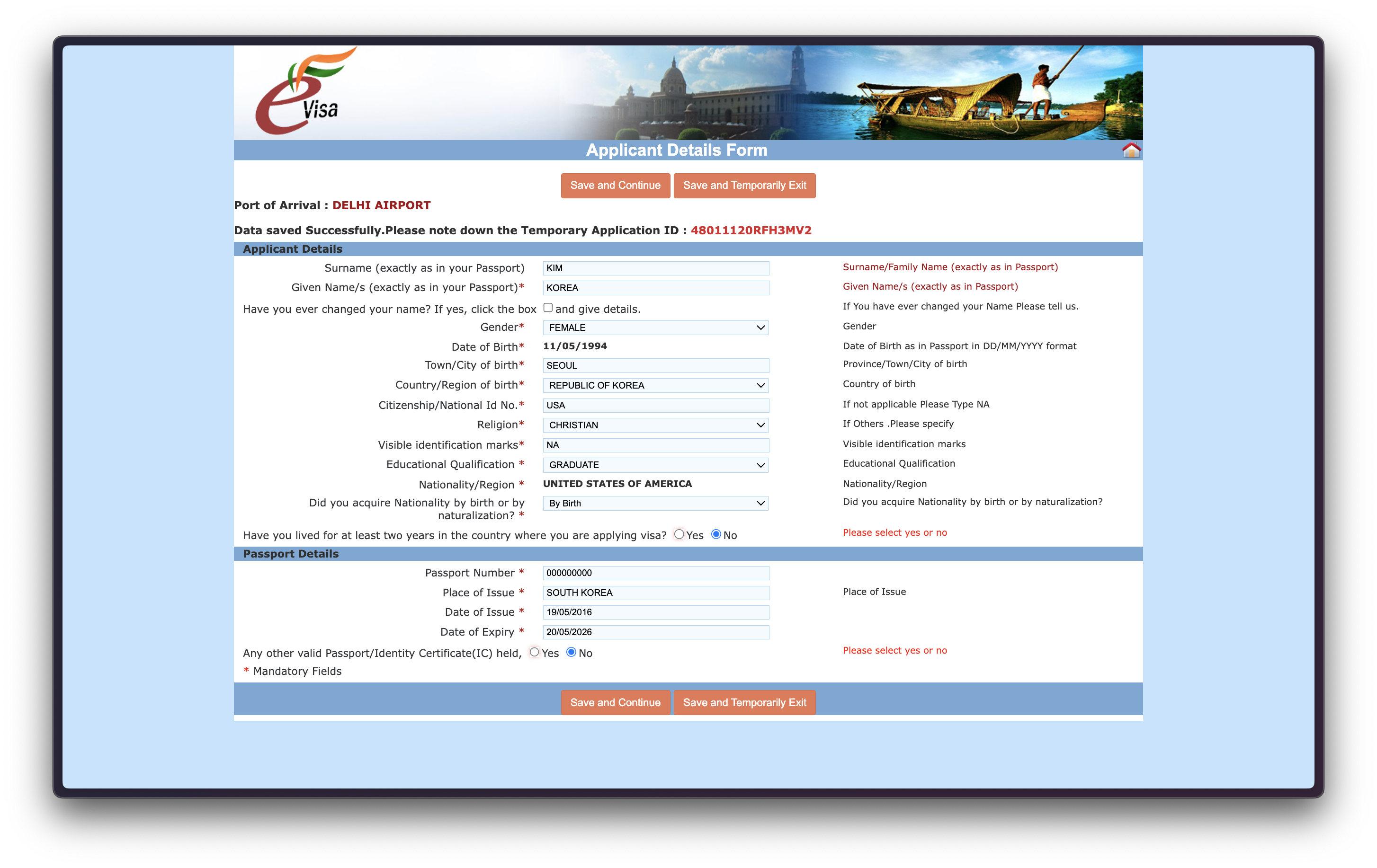 종교에 민감한 나라이다 보니 기독교인 필자는 잠시 무교라고 할까 고민했지만 그래서 리젝되면 안가고 말지 라는 생각으로 그냥 크리스찬이아고 기입했다. 학력은 왜 물어보는지 모르겠으나 일단 입력한다. 그리고 여권 정보를 넣는다.