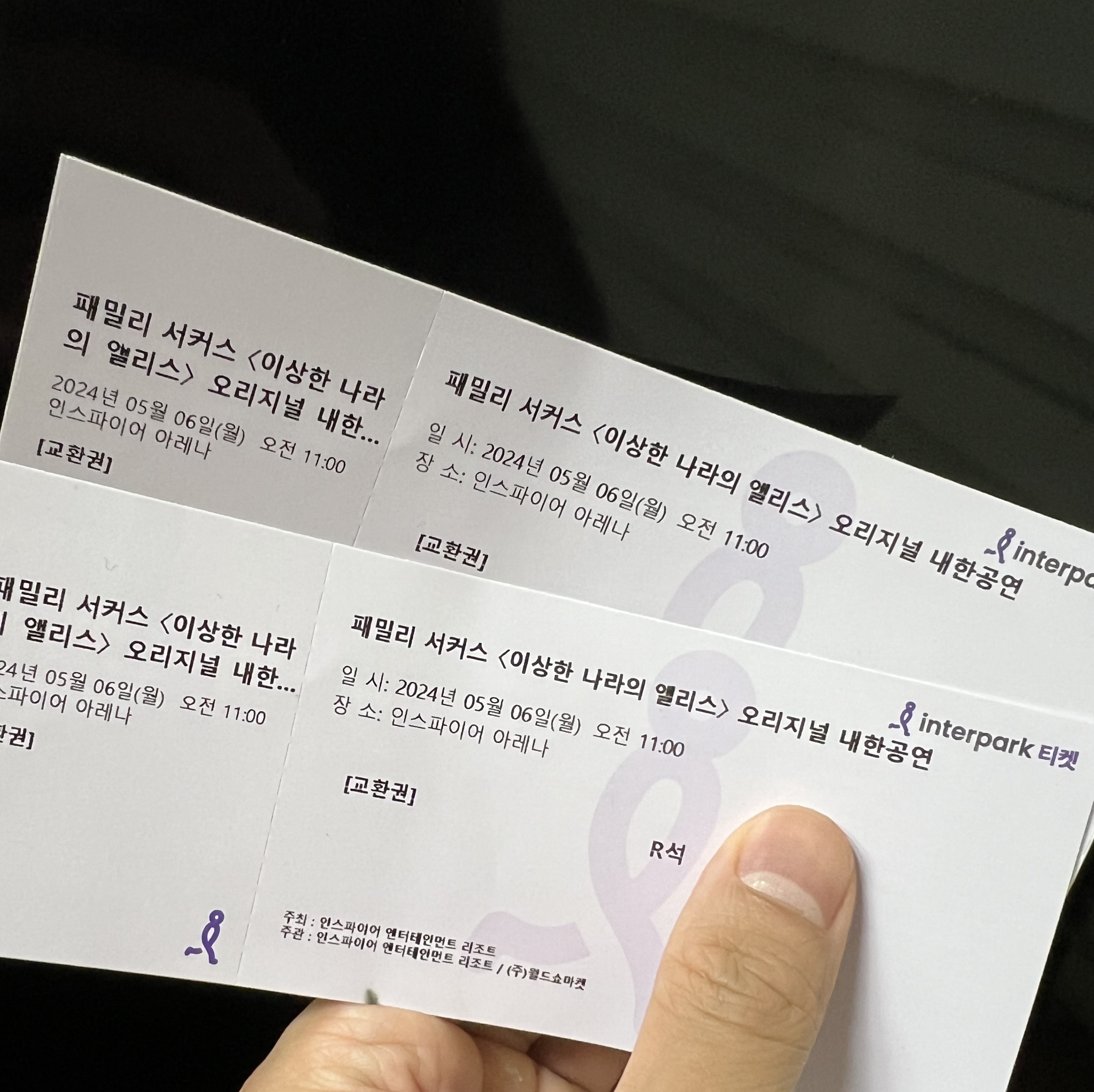 아이들과 함께 즐기기에 좋은 공연인건 확실하다. 화려한 무대와 지루할 틈 없는 이야기가 아이들을 매료시키기에 충분했다. 서커스 관람에 앞서 앨리스 원작 소설을 미리 읽어보는 것도 좋을 것 같다. 공연중에는 사진이나 영상 촬영이 불가해서 눈에 열심히 담았다.