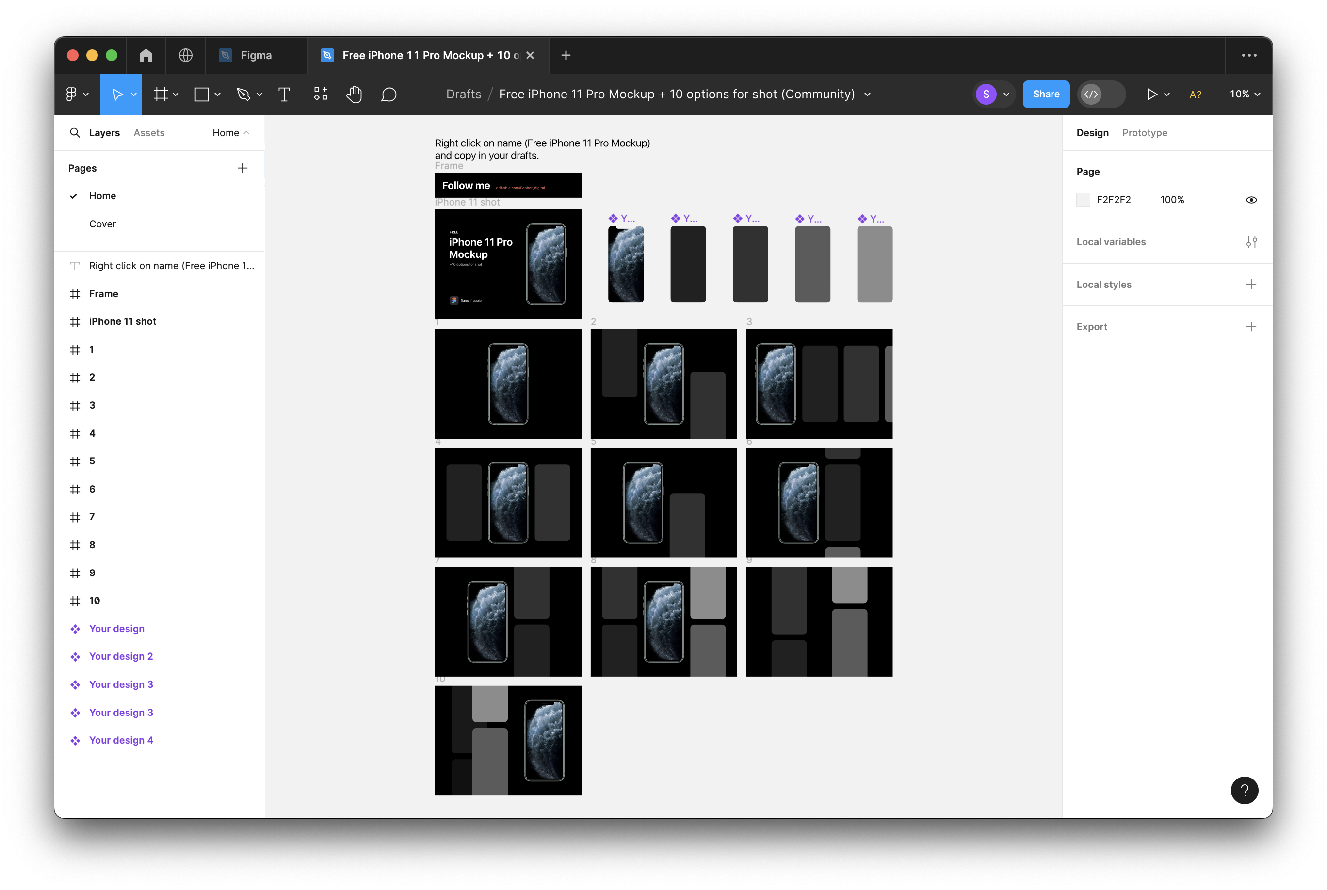 이 파일의 경우, 컴포넌트화 되어있는 프레임 안에 나의 디자인을 덮어씌워 아이폰 목업을 완성하는 방식이네요.