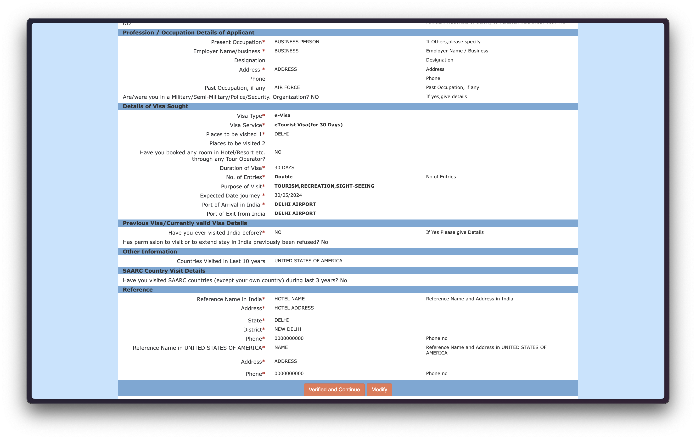 입력한 정보가 모두 맞으면 Verified and Continue 버튼을 클릭한다.