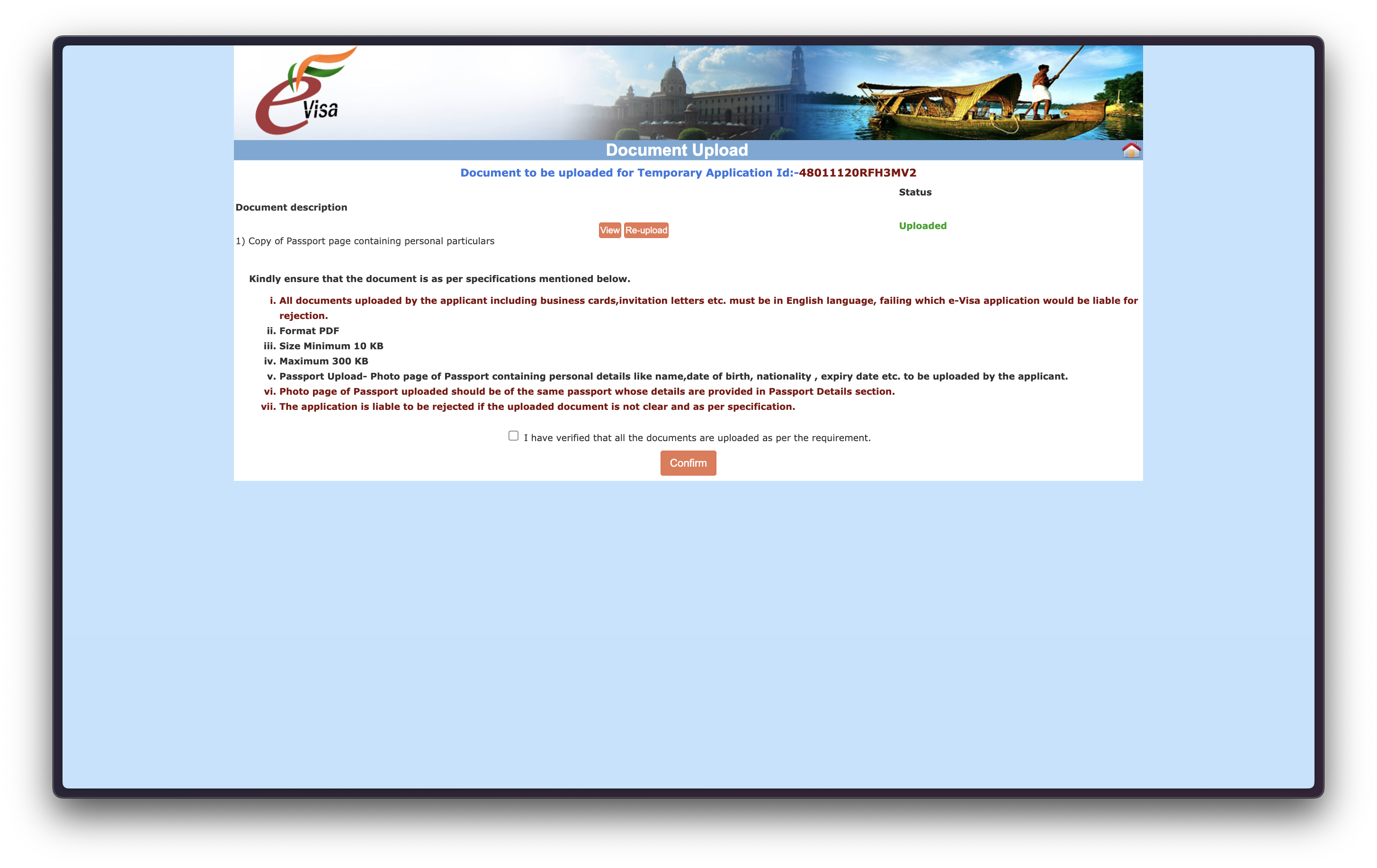 Continue를 누르면 비자 사진과 여권 스캔본을 준비하라는 팝업이 뜬다.